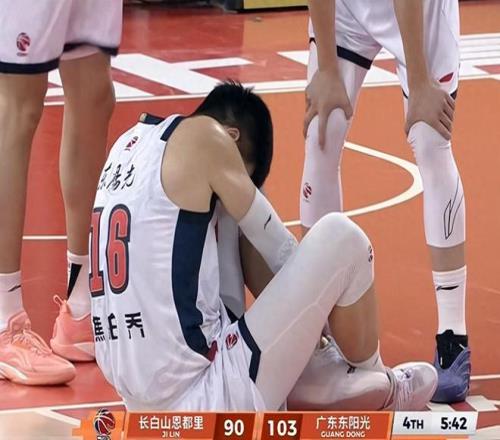 昨晚还有一个画面,个人觉得不对劲。比赛战至末节还剩5分42秒时,焦泊乔被队友胡明轩绊倒,前者显然是扭了脚,倒地后一度没有起来,最后被队友扶着单脚跳出场外。焦泊乔倒地后,等吉林进攻回合完成后,裁判吹停了比赛,此时焦泊乔还未起来,附近的队友王少杰和奎因纷纷前去看望焦泊乔,关心他的伤情。而绊倒焦泊乔的胡明轩却漠不关心,抱着球扬长而去。虽然我是广东球迷,也要对胡明轩这种冷漠的态度进行批评。